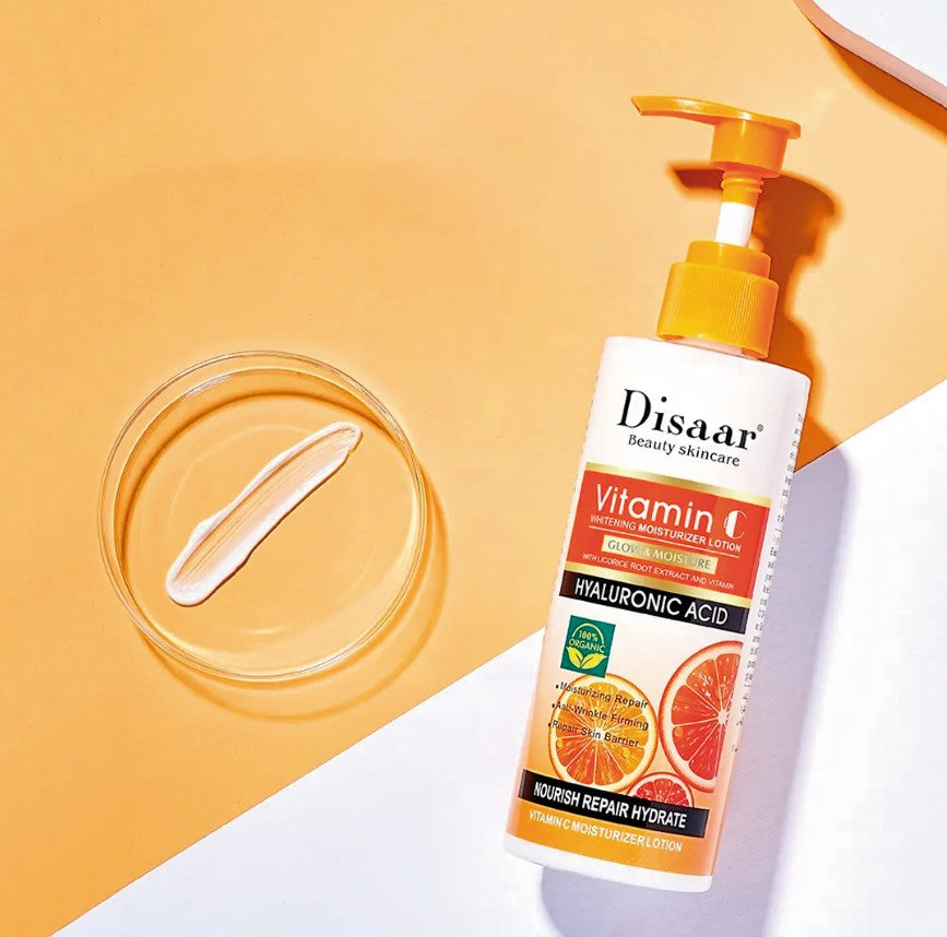 Con la loción corporal blanqueadora de Disaar, notarás una piel más luminosa, hidratada y uniforme desde la primera aplicación. Su fórmula enriquecida con vitamina C y colágeno actúa profundamente para reducir la melanina, atenuar manchas y dar un aspecto radiante. ¡Disfruta de una piel más suave, firme y visiblemente rejuvenecida!